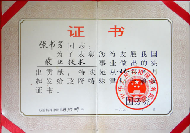 張書芳老先生是中國著名遺傳學育種專家、國家級有突出貢獻專家、全國勞動模范、首批享受國務院特殊津貼、首批政府特別獎獲得者。在他主持的大紅蘿卜、大白菜遺傳育種工作的近五十年中,取得重大科研成果13項,兩次榮獲“國家發(fā)明二等獎”(十幾年中一等獎一直空缺),填補了兩項世界科技空白,一次榮獲農業(yè)部科技進步一等獎。